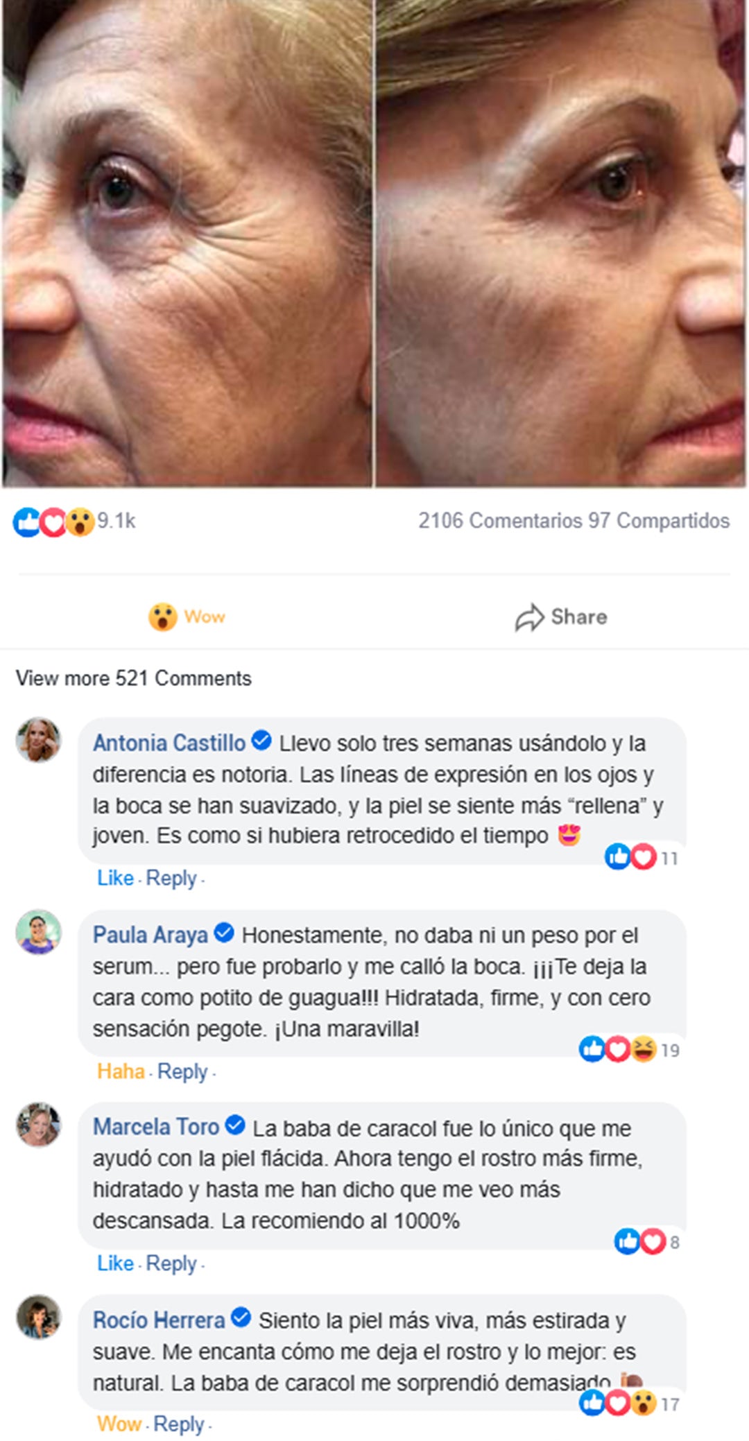 Reportaron una piel más luminosa, gracias al efecto antioxidante del la baba de caracol